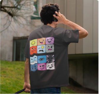 Twelve playful faces in a clean grid bring personality to everyday wear while staying easy to style.